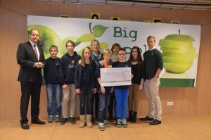 Die Schulgemeinschaft übergibt den Scheck