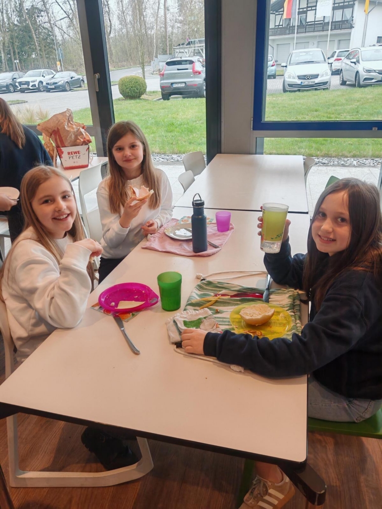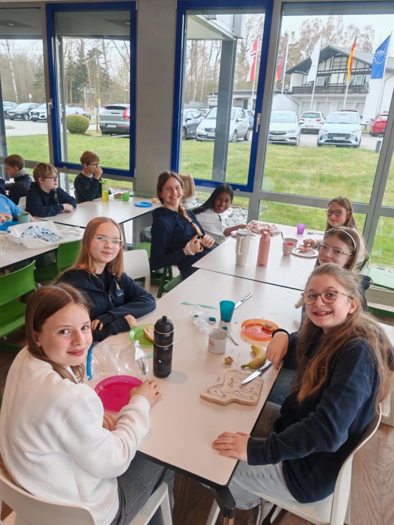 Für dieses besondere Engagement wollte sich der Jahrgang 2025 bedanken. Kurz vor den Ferien luden unsere 5er die Sechstklässler zu einem liebevoll vorbereiteten, reichhaltigen Frühstück ein. In gemütlicher Atmosphäre wurde gemeinsam gelacht, erzählt und gespeist. Dabei wurde noch einmal deutlich, wie wertvoll die Unterstützung der Paten für den Start am RC war.