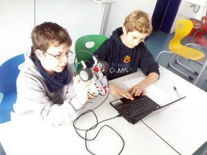 Der Roboter hängt mit dem "Bauchnabel" am PC