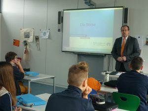 Herr Veith informiert die Lernenden über die Börse und