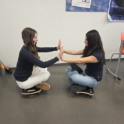 Zu Beginn untersuchten die Lernerinnen und Lerner das 3. Newtonsche Gesetz („Actio = Reactio“) anhand eines Experiments mit Rollbrettern. Zwei Lernende setzten sich jeweils auf ein Rollbrett und stießen sich in unterschiedlichen Situationen voneinander ab. Durch gezielte Variationen – etwa unterschiedliche Massen oder unterschiedliche Arten des Abstoßens – konnten die beobachteten Bewegungen miteinander verglichen werden. Schnell wurde deutlich: Kräfte treten immer paarweise auf, und beide Beteiligten erfahren gleichzeitig eine gleich große, entgegengesetzte Kraft.