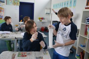 Die Lernenden benennen die im Inneren sichtbaren Teile des Linsenauges und