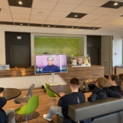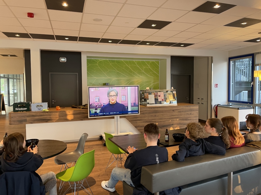 Wie bei den vergangenen Wahlen trafen sich auch am Wahlabend der Landtagswahl Rheinland-Pfalz auf Einladung der Sozialkunde-Lehrer:innen politische interessierte Lerner:innen im Bistro – und das total freiwillig. Gemeinsam mit Frau Velten und Herrn Henn verfolgten sie die Prognose und Hochrechnungen und verglichen die Ergebnisse mit denen der Juniorwahl in Rheinland-Pfalz und am Campus.
